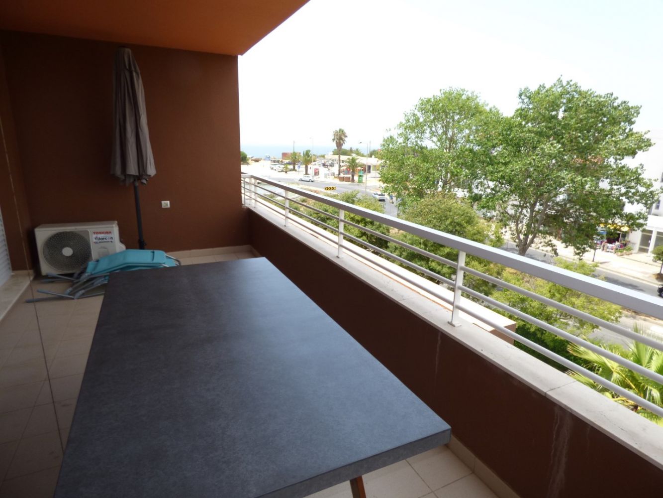 O apartamento tem uma excelente varanda com vista mar.