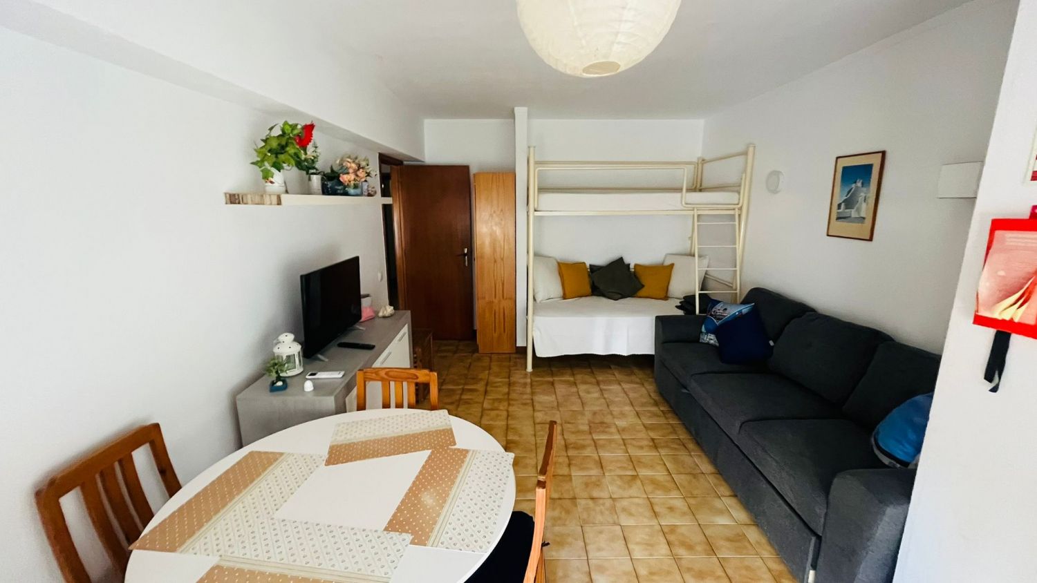 Sala com Tv, Sofá cama e Beliche