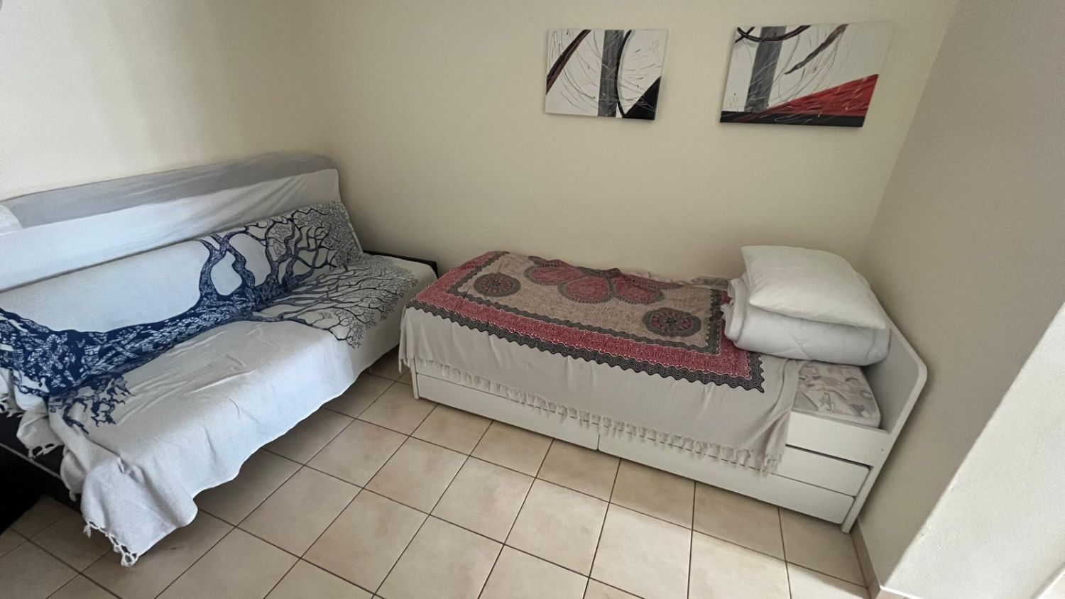 Dispõe de um quarto com  2 camas de solteiro e roupeiro.