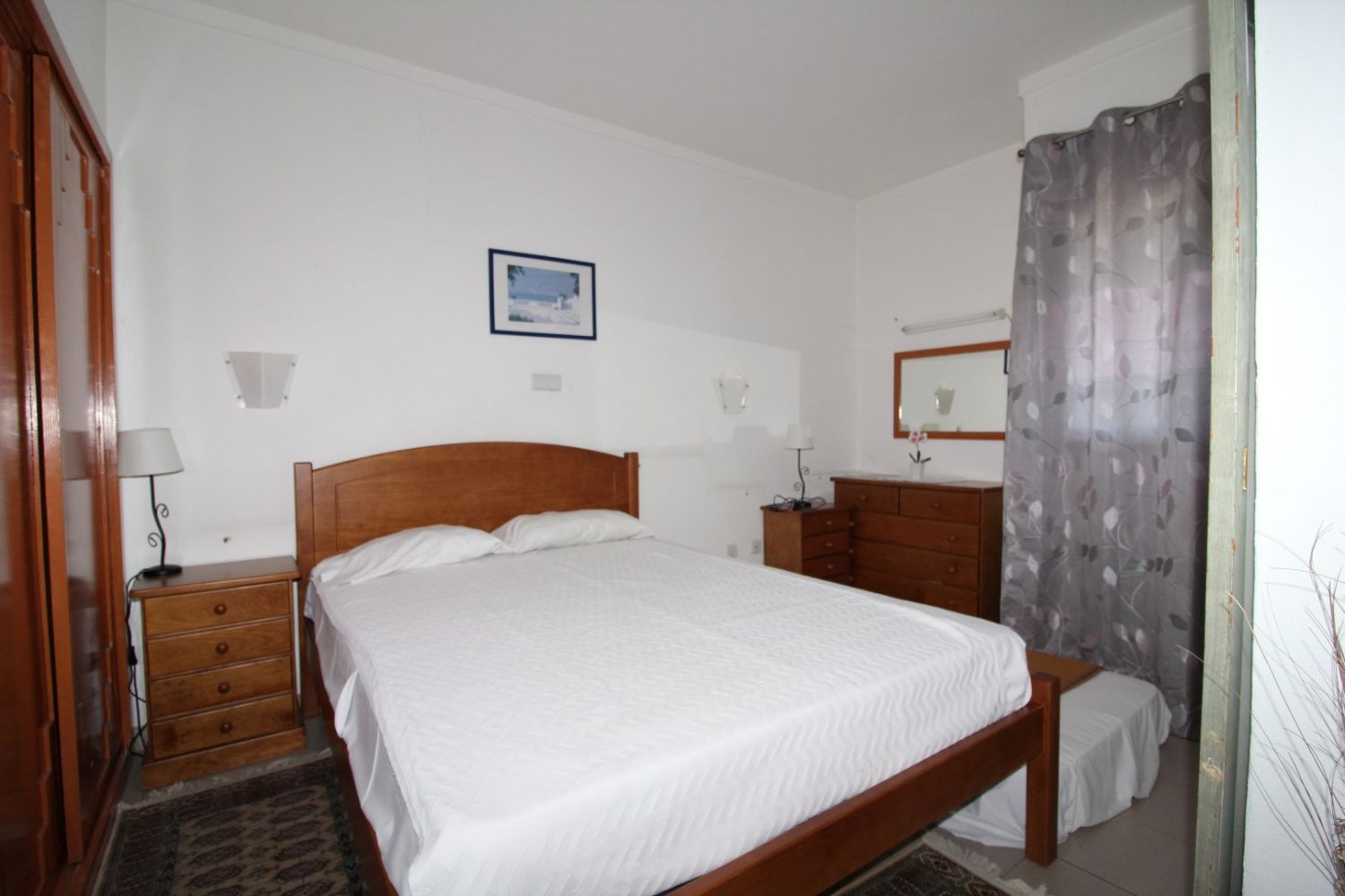 Apartamento dispõe de um quarto com  cama de casal  e roupeiro.
