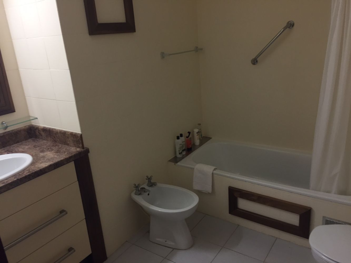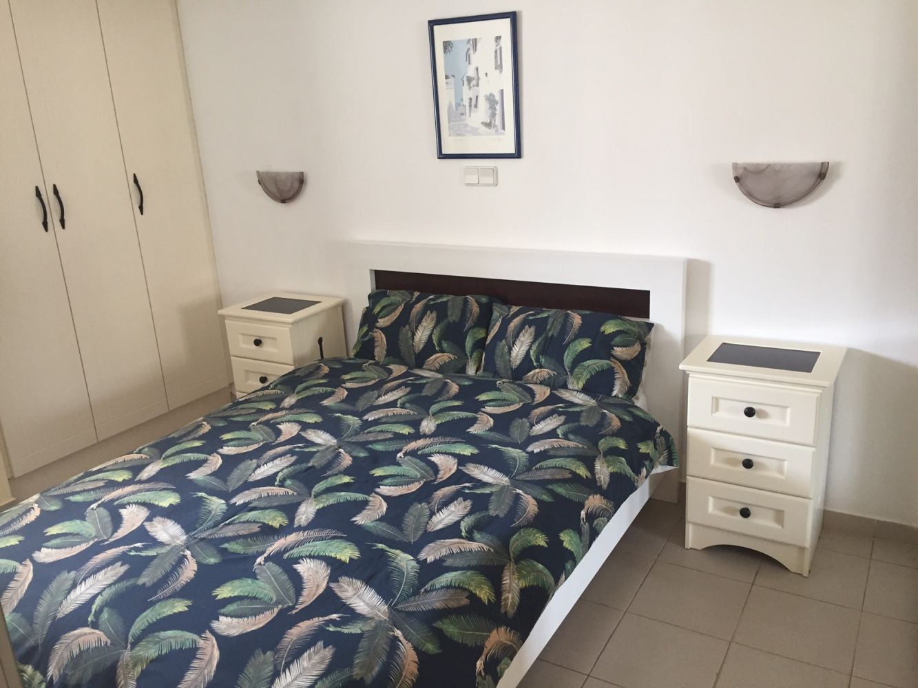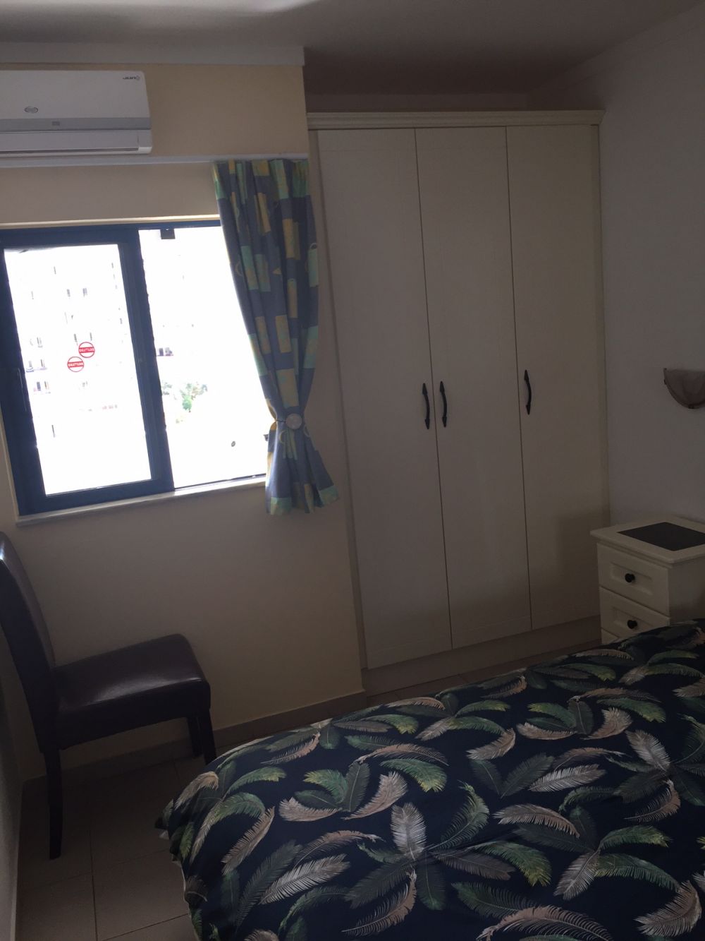 Apartamento dispõe de um quarto com  cama de casal  e roupeiro.