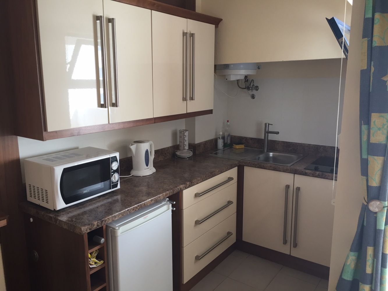 Cozinha equipada com: louça/talheres, trem de cozinha, máquina de café, torradeira,varinha, placa eléctrica, micro-ondas, frigorífico e outros utensílios