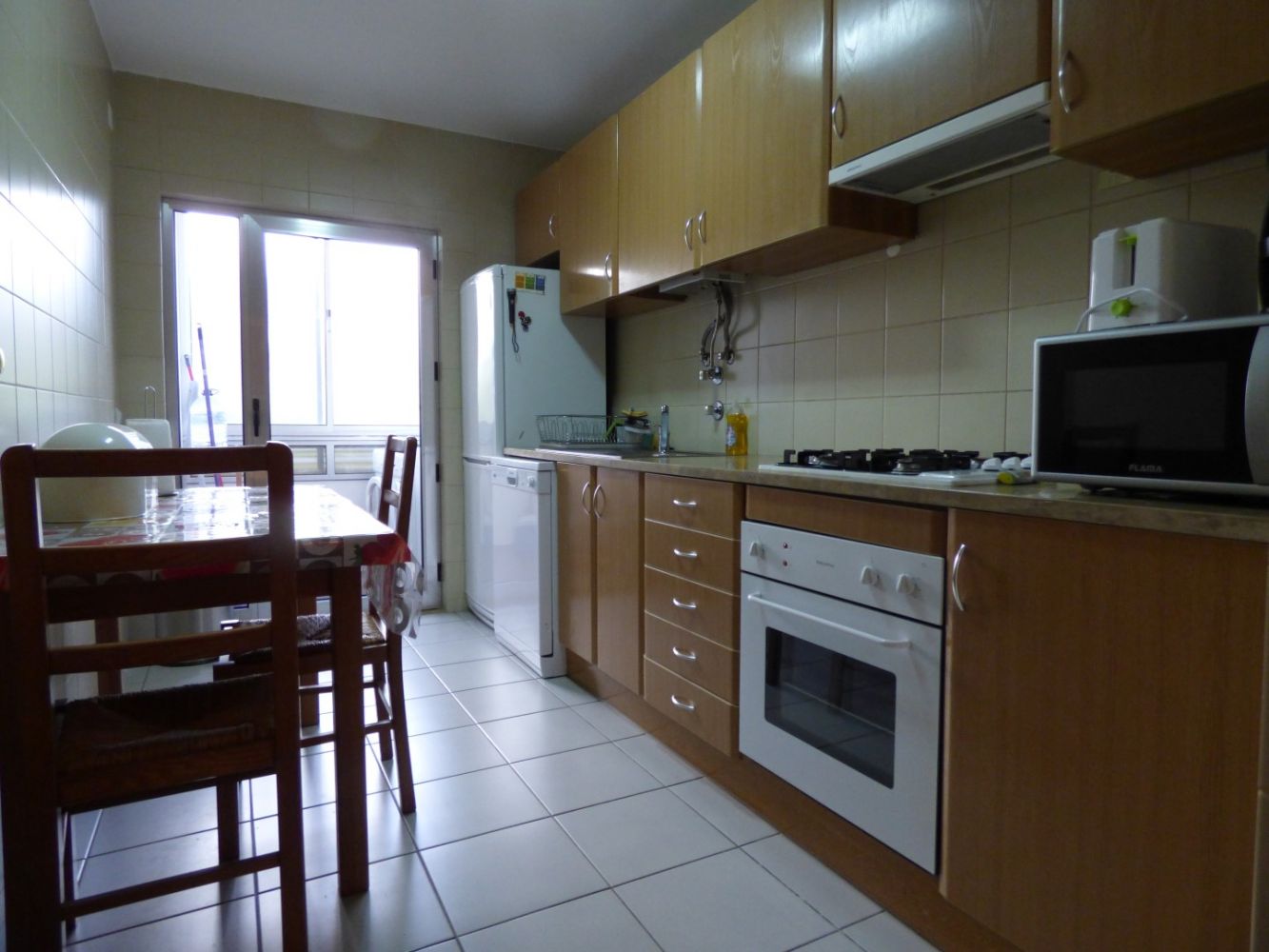 Cozinha equipada com: Máquina de Lavar Roupa e Máquina de lavar louça, frigorifico combinado, forno, Micro ondas, torradeira, grelhador, varinha e outros os utensílios de cozinha.